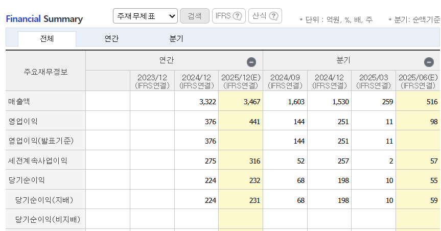- 2025년 예상 매출액, 영업이익, 당기순이익이 2024년 대비 증가할 것으로 예상되어 시장의 기대