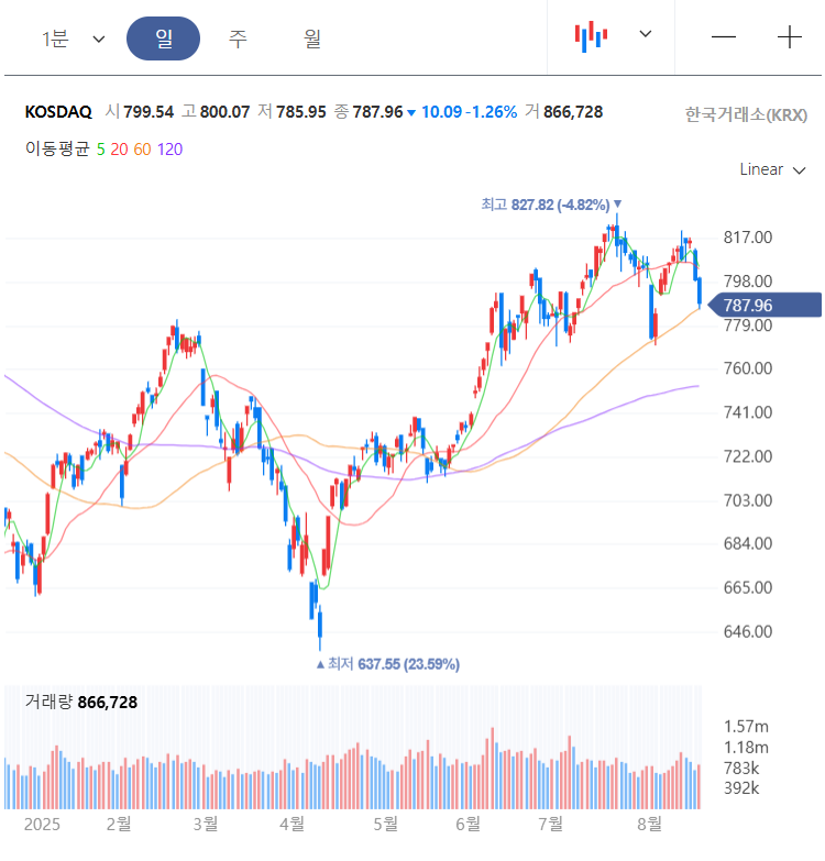 8/19 KOSDAQ 787.96(-1.26%)