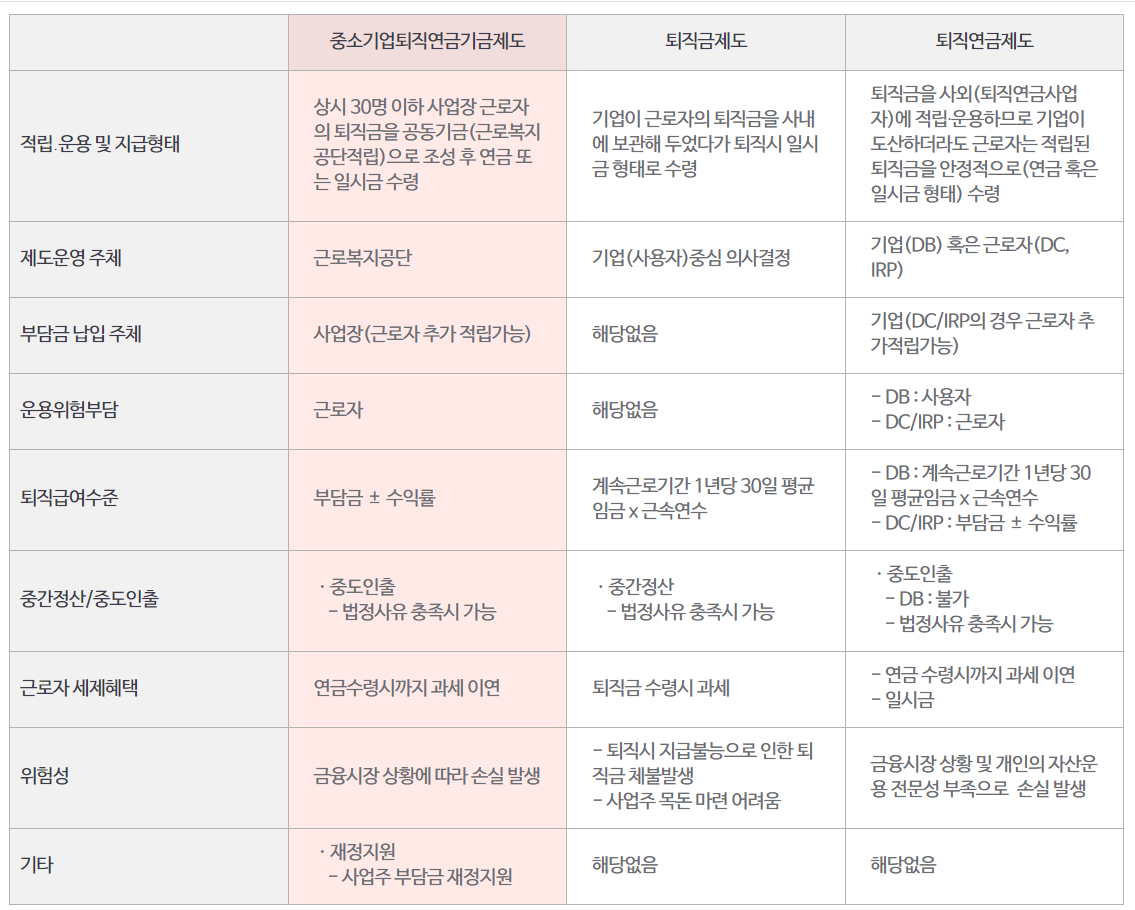 * 중소기업퇴직연금기금제도 VS 퇴직금제도 VS 퇴직연금제도