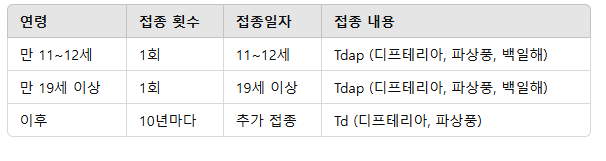 청소년 및 성인 백일해 예방접종 일정: TdaP 백신