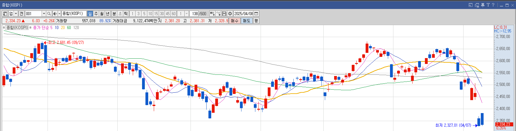 4/8 KOSPI 2,334.23(+0.26%)