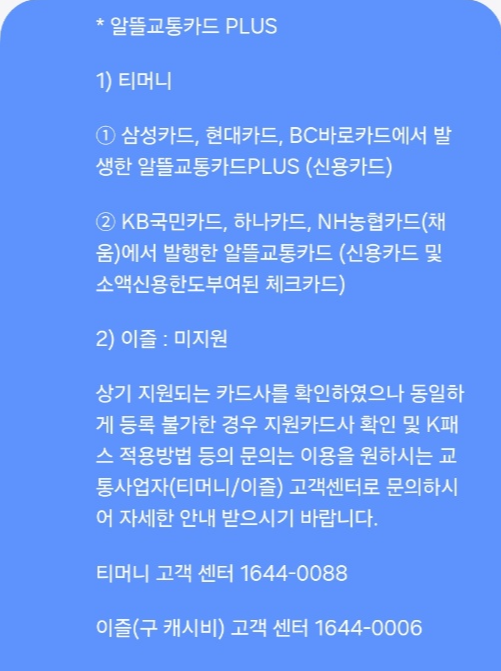 이번 K-패스 사업은 삼성페이가 가능하다고 해서 삼성월렛(구 삼성페이) 어플을 통해 교통카드 추가를 여러번(하루 3회) 해도 계속 오류가 났습니다. 기존꺼를 삭제하고 재등록하거나 신규 가입을 해야 한다고 했는데요, 삭제하고 재등록해도 계속 같은 오류가 나서 문의했습니다. '신용한도없음'이라는 말을 이해를 못한 상태였습니다.